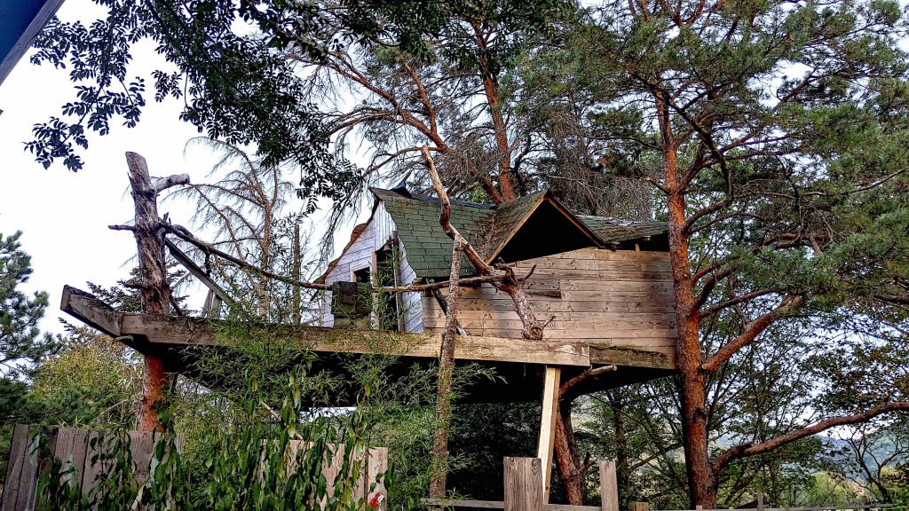 Celle-ci est le modèle « grand luxe », et réalisée par une équipe dirigée par un maestro du bois, ébéniste de métier. Je l’ai photographiée depuis ma terrasse et c’était impressionnant à voir cette hauteur de construction. J’imagine la joie unique des enfants ayant pu s’y amuser et y dormir !