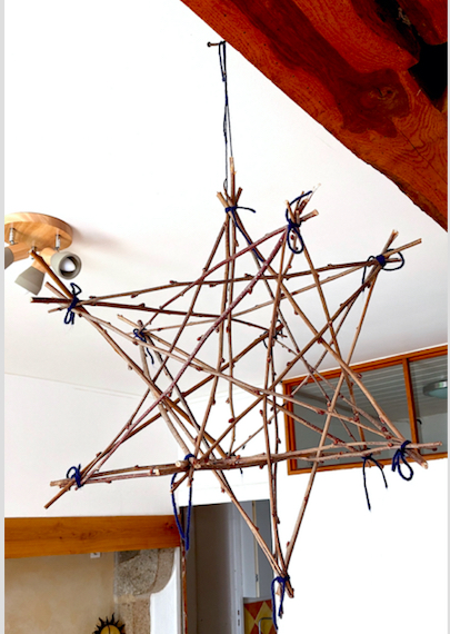 Voici la photo d’une étoile en 3D a base de petites branches d’arbres ou d’arbustes. Coûts des matériaux = zéro.