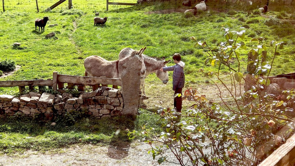 Je suis dans un gîte-ferme de la Creuse. Barnabé, garçon âgé de 10 ans se trouve dans le domaine aussi où vivent poules, coqs, oies, ânes, canards, cygnes, moutons, chats et chien.