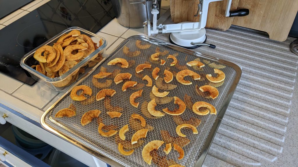 Vous achetez un kilo de pommes, (ou mieux vous allez les ramasser avec eux) vous les découper en rondelles et le tour et joué pour les faire déshydrater (soit dans une machine spéciale, soit dans un four qui offre 40°C). Les jeunes goûteront à ses fruits et ceux-ci leur apporteront de l’énergie pour d’autres activités pratiques (utiles et bénéfiques).