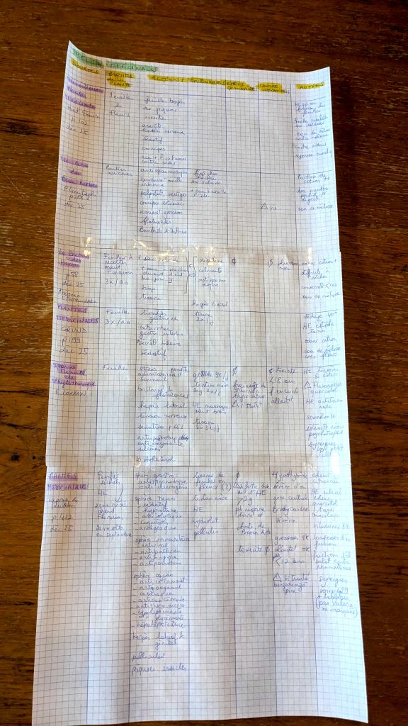 PS : Ne cherchez pas à lire forcément le contenu car c’est un travail pour une future visio avec un groupe d’infirmières passionnées par les plantes.