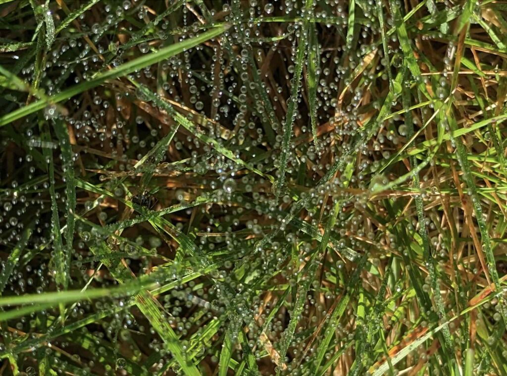 Elle réside en une rosée du matin, posée sur des feuilles de petites plantes ou un toile d’araignée encore endormie !