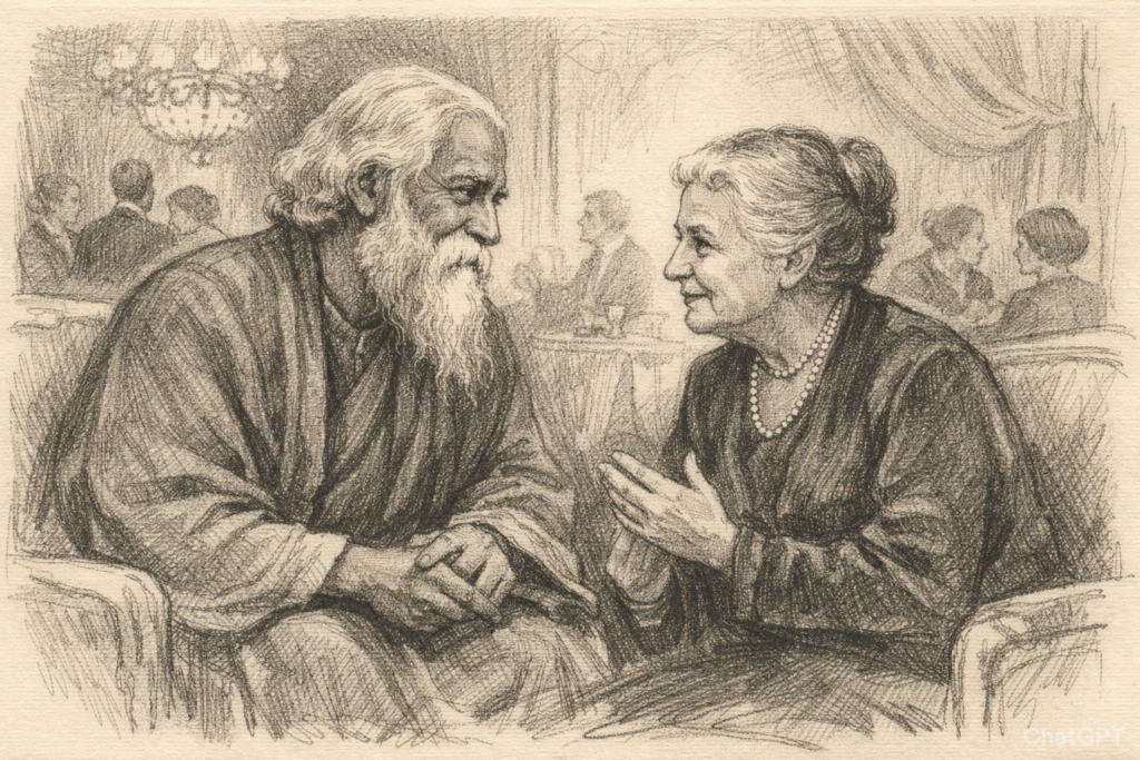Non, Maria Montessori n’a pas traversé l’océan Atlantique en 1930 pour assister à un banquet même organisé par M. Tagore, bien que c’était son métier engagée qu’elle était dans les trois causes dont je parle régulièrement : Les enfants, les Femmes et la Paix.