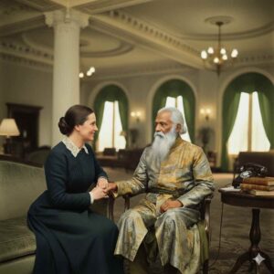 En revanche, M. Tagore s’est bien rendu aux USA à cette époque. C’était un grand voyageur aussi, comme l’atteste le site de sa ligne de vie ICI. Vous pourrez constater qu’il est en effet reçu, -tout comme Maria en 1913 (par la fille du président)-, par le président Américain de l’époque, signe de la grandeur de cette personne. Il est indiqué aussi, qu’un banquet est donné à l’hôtel Baltimore pour 400 personnalités newyorkaises (300 selon une autre IA). Ce que Maria n’était pas, de toute façon.