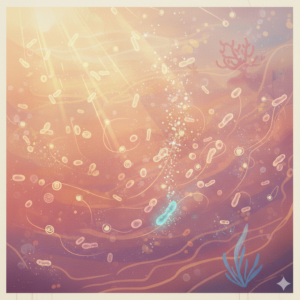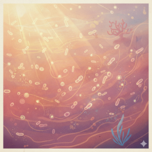 Dans les océans chauds, de minuscules petites créatures, invisibles à l’œil nu, flottaient. Elles étaient seules. Mais elles possédaient un secret magique : elles savaient capturer la lumière du soleil.